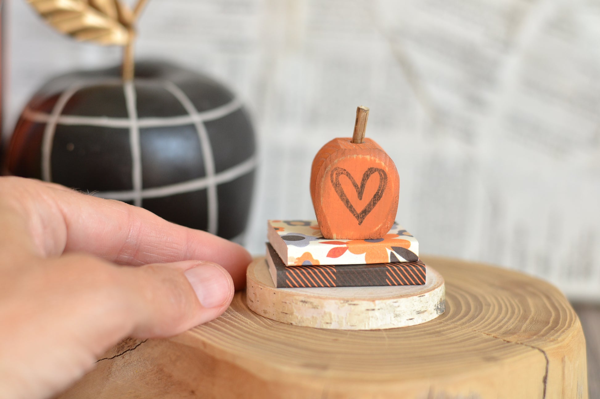 Mini Halloween books on a log slice. Just too cute! Perfect for your book club ladies!