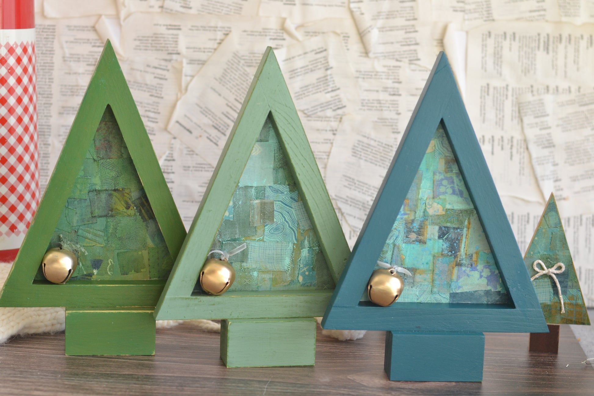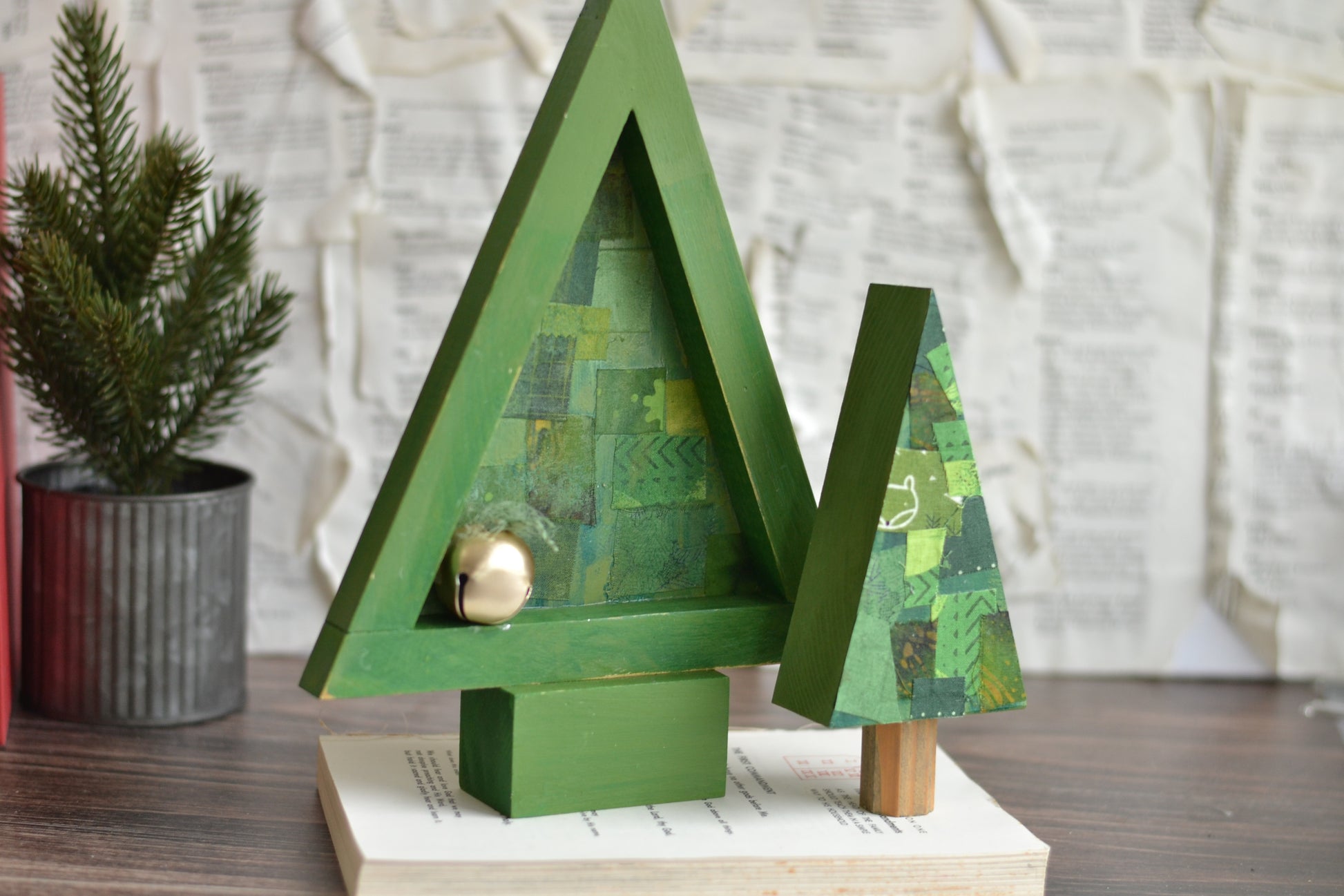 The prettiest green tree with a patchwork style backing.
